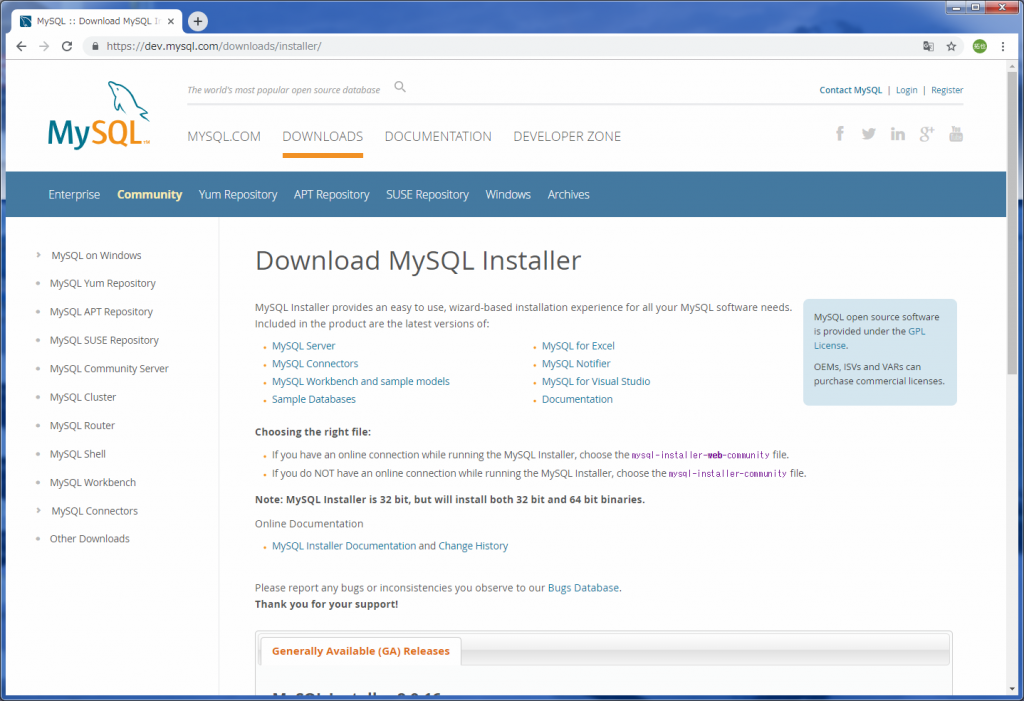 MySQLは、Linux、Mac、Windowsと様々なOS向けにリリースされていますが、ここではWindows版MySQLのダウンロード方法をみていきます。